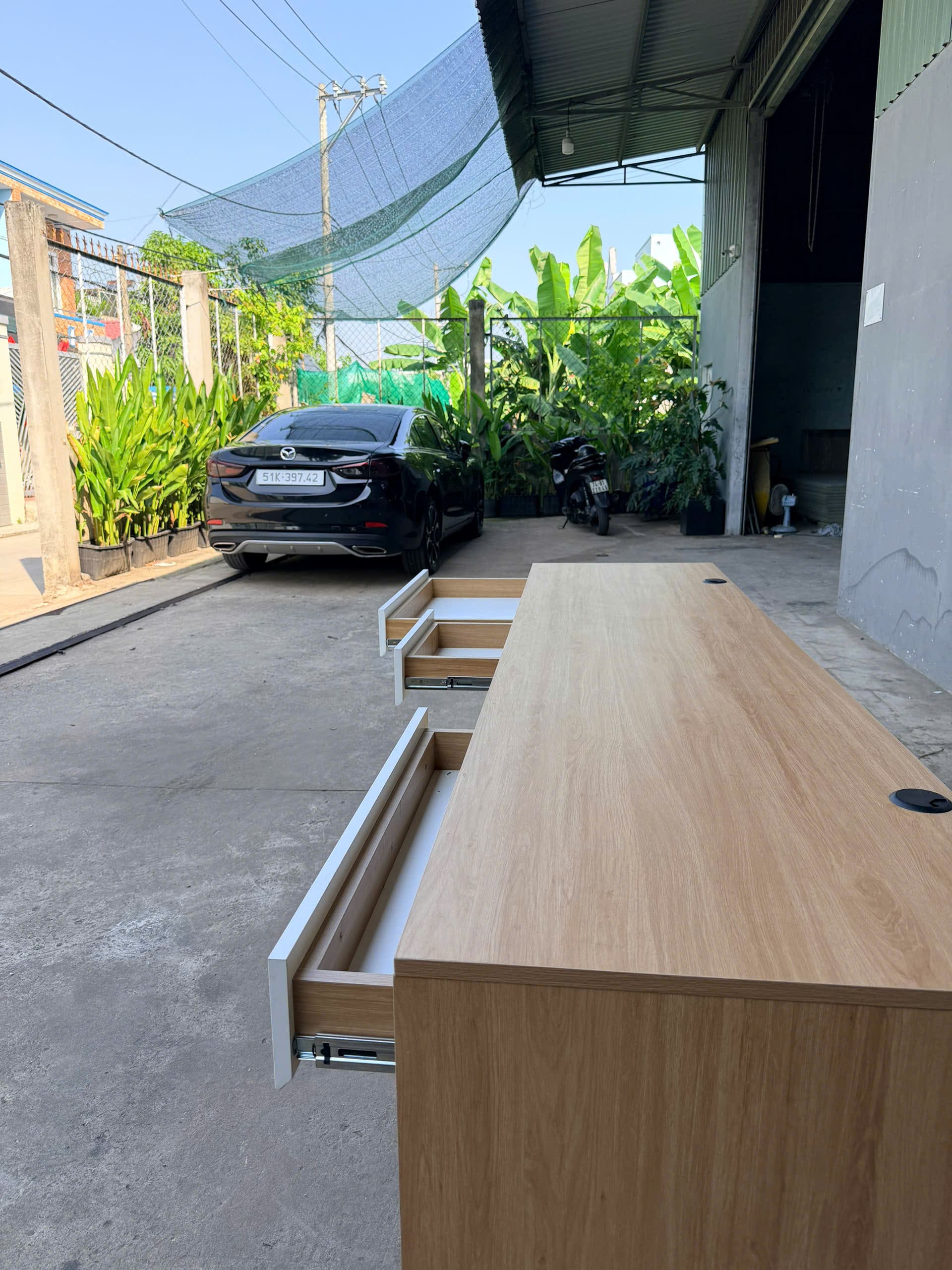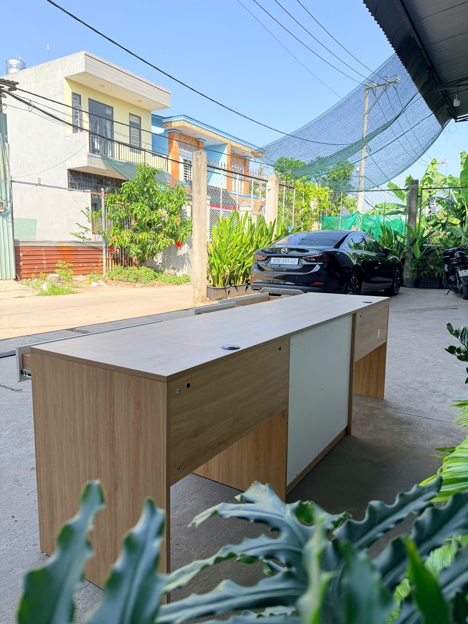 Mặt bàn dài 2m4 phù hợp đặt 2–3 màn hình, laptop và phụ kiện làm việc