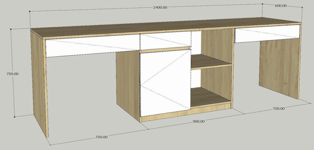 Kích thước: Dài 2400 x Sâu 600 x Cao 750 (mm)