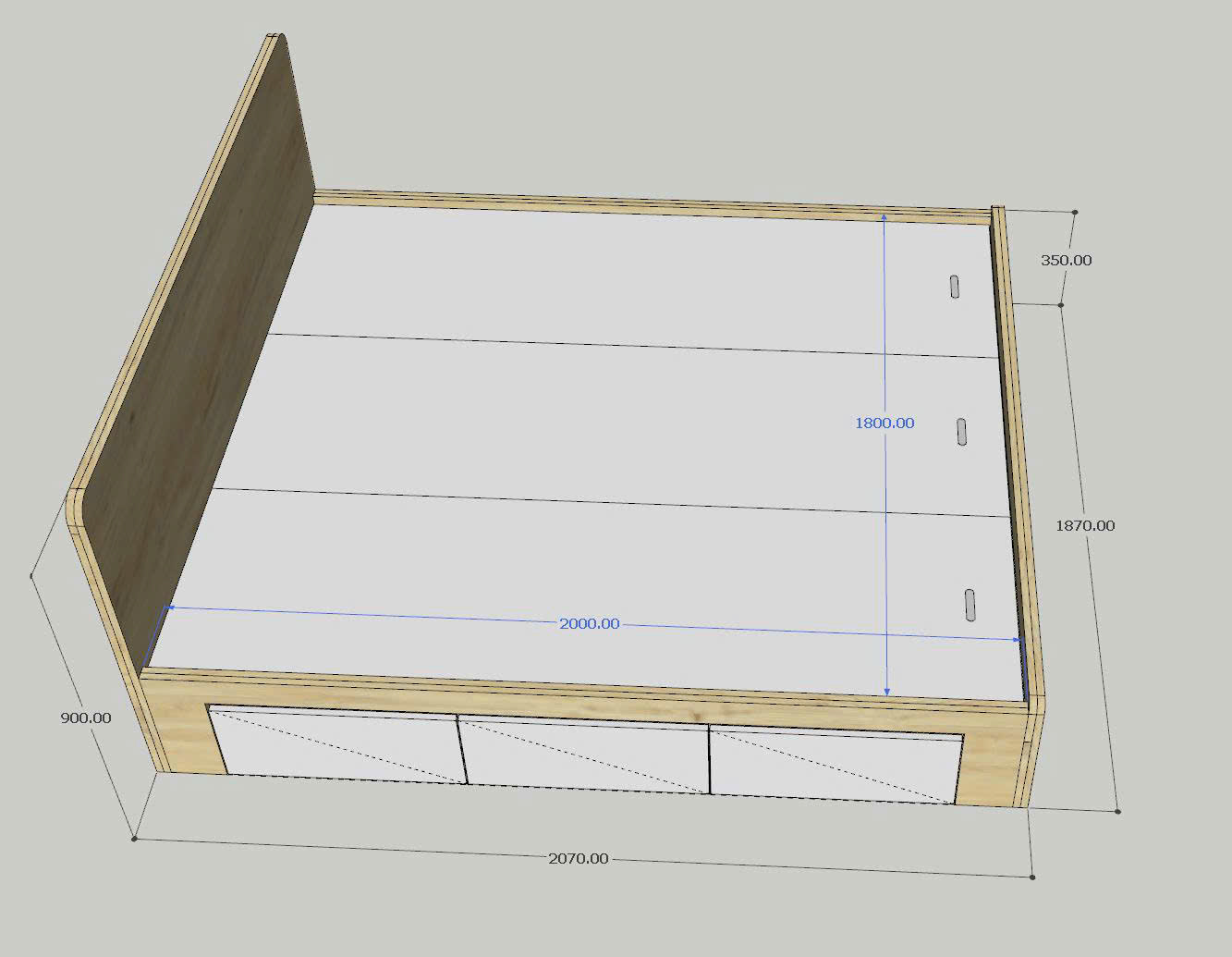 Kiểu dáng: Giường bệt có 3 ngăn kéo tiện ích