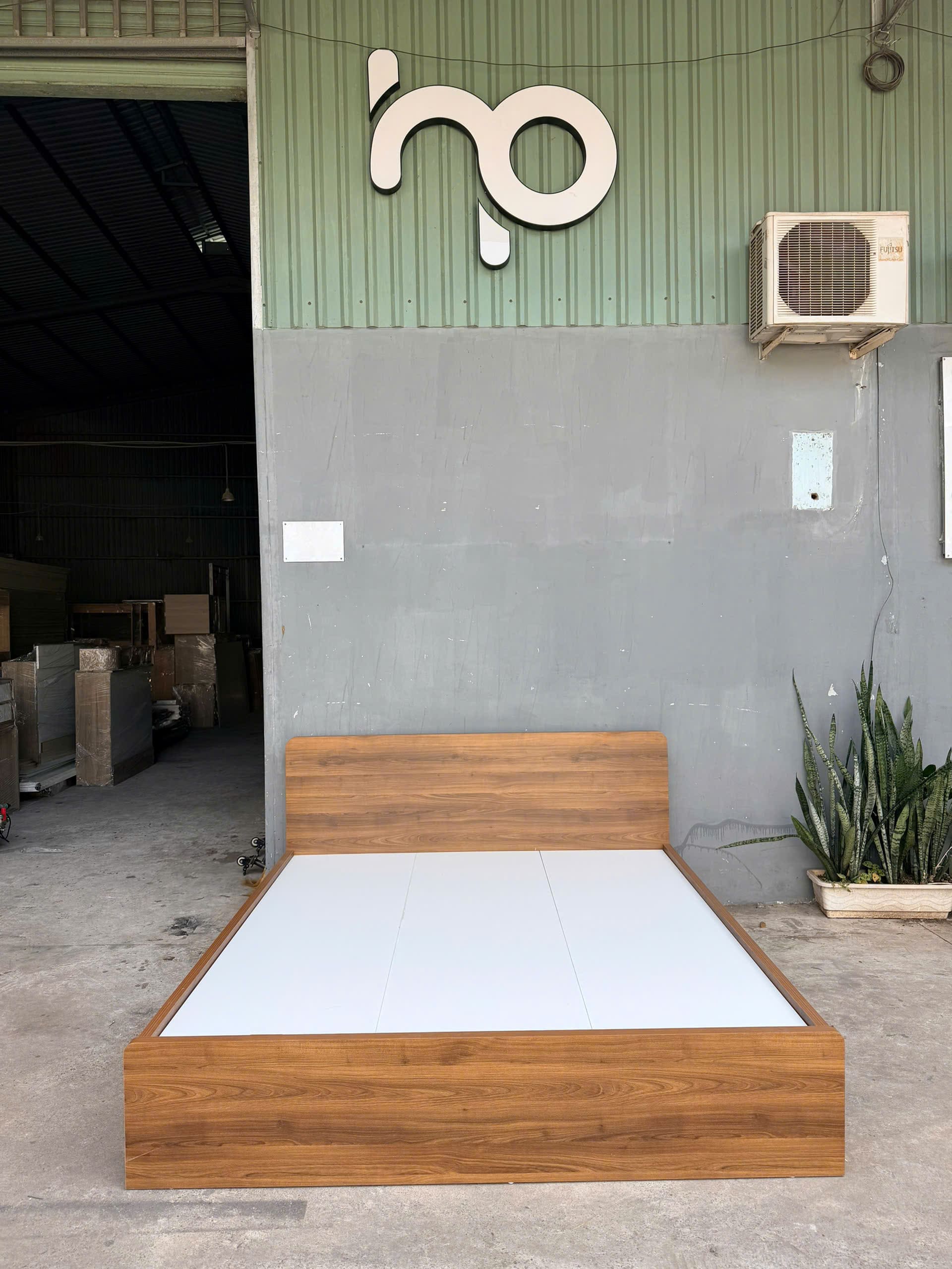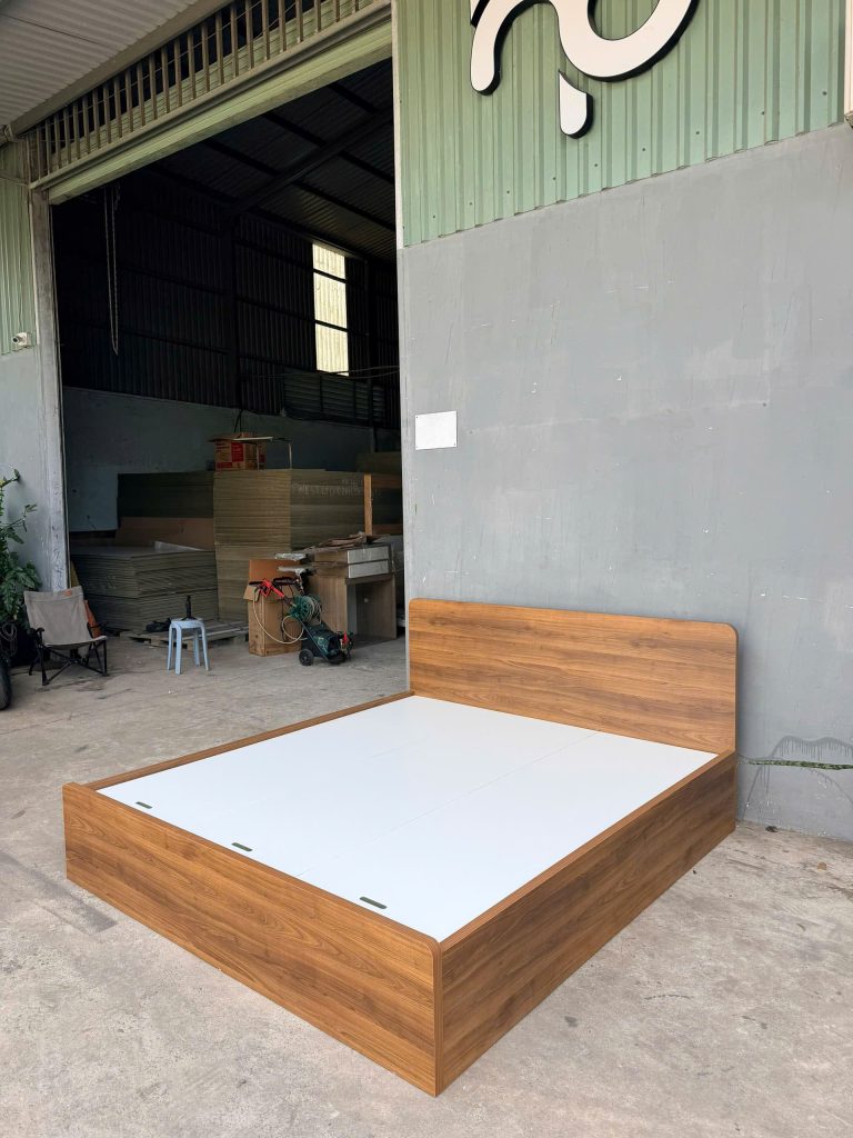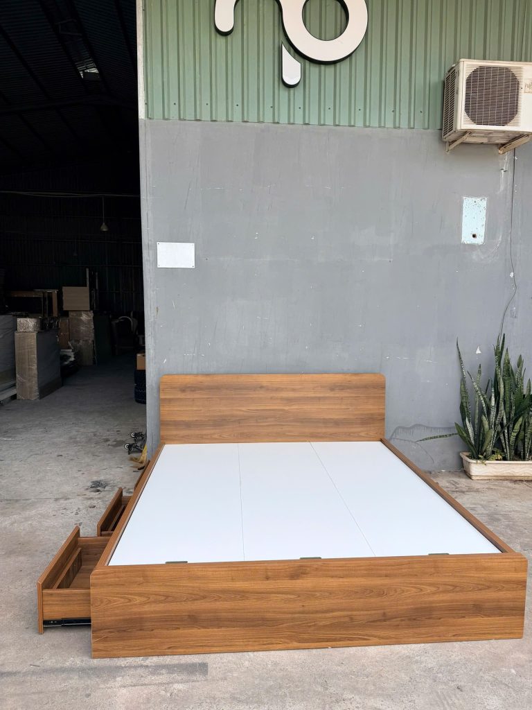 Tên sản phẩm: Giường ngủ bệt MDF có ngăn kéo màu nâu vân gỗ