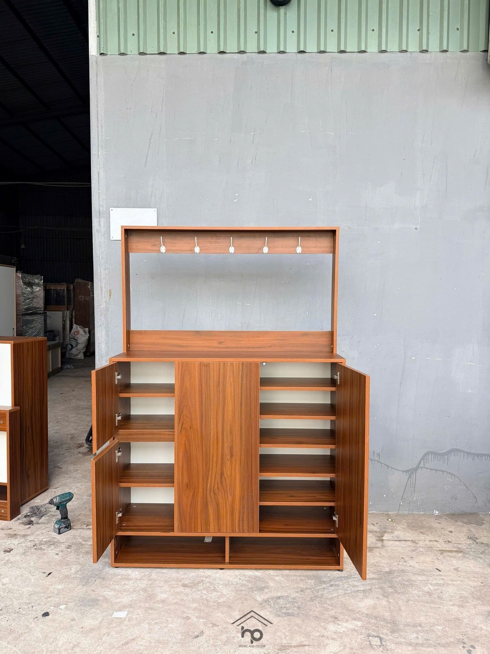 Tủ giày 4 cánh 1m2 MDF chống ẩm màu nâu vân gỗ – thiết kế hiện đại, nhiều ngăn tiện dụng