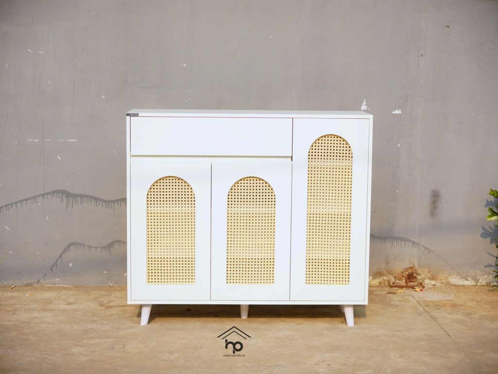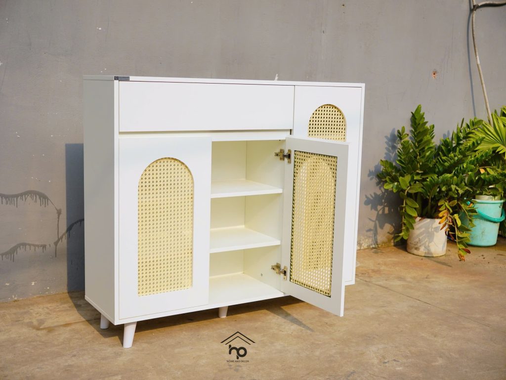 Tủ giày cánh mây 1m2 – Thiết kế vòm mây thoáng khí, phong cách Indochine hiện đại