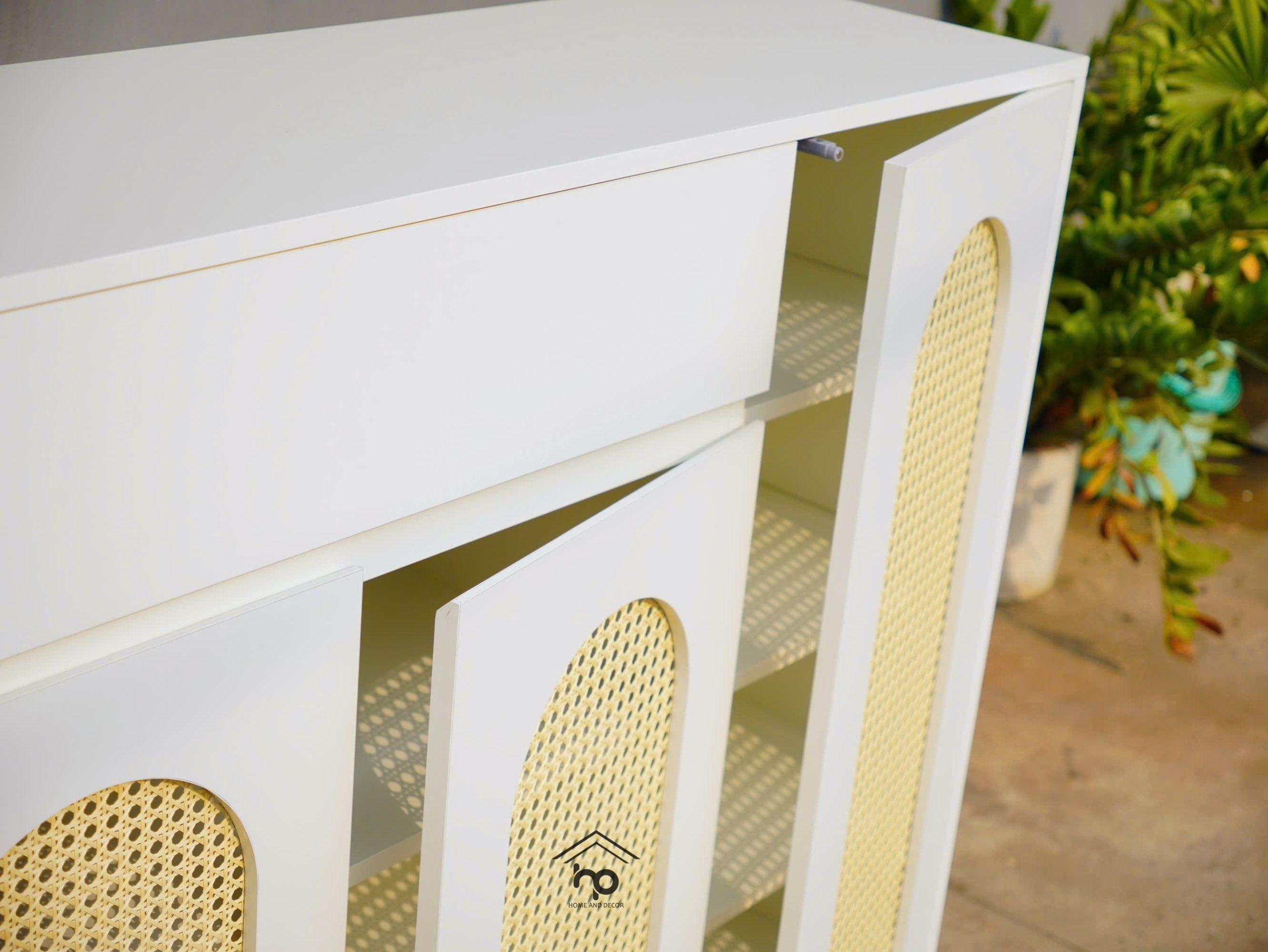 Cánh tủ: Khung MDF kết hợp mây đan nhân tạo dạng vòm