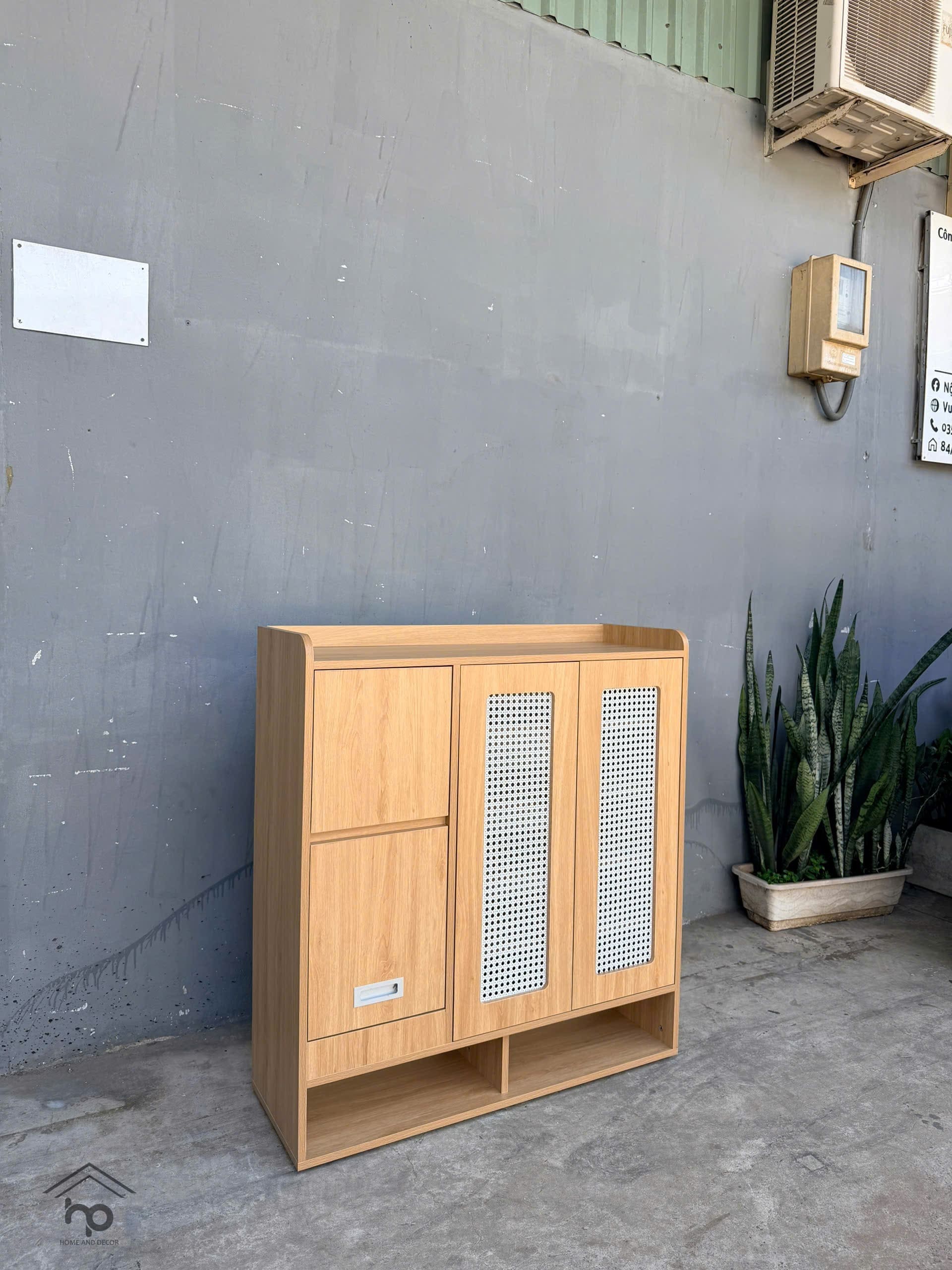 - Tủ chia 3 khoang: 1 khoang kín + 2 cánh mây đan thoáng khí
