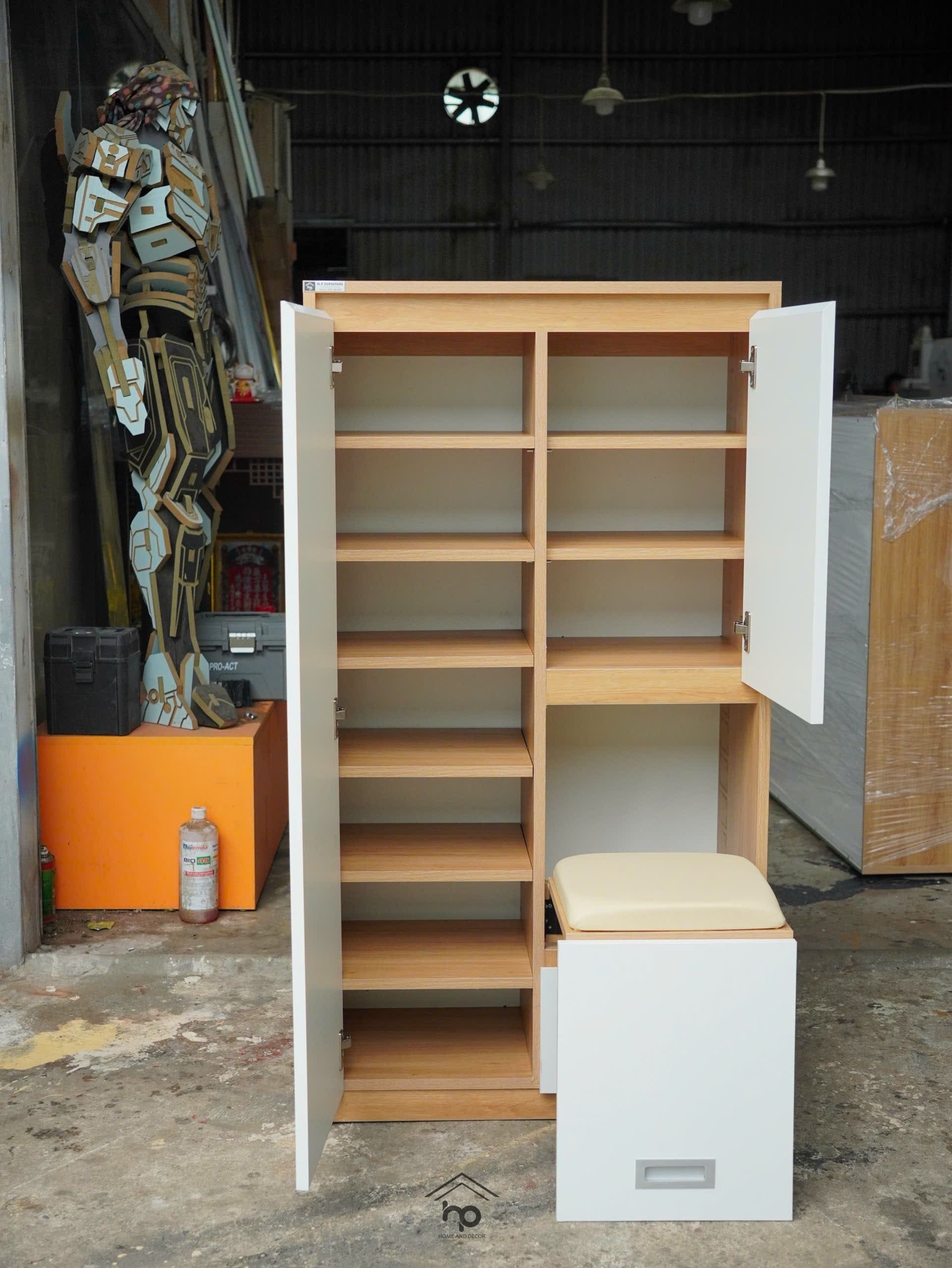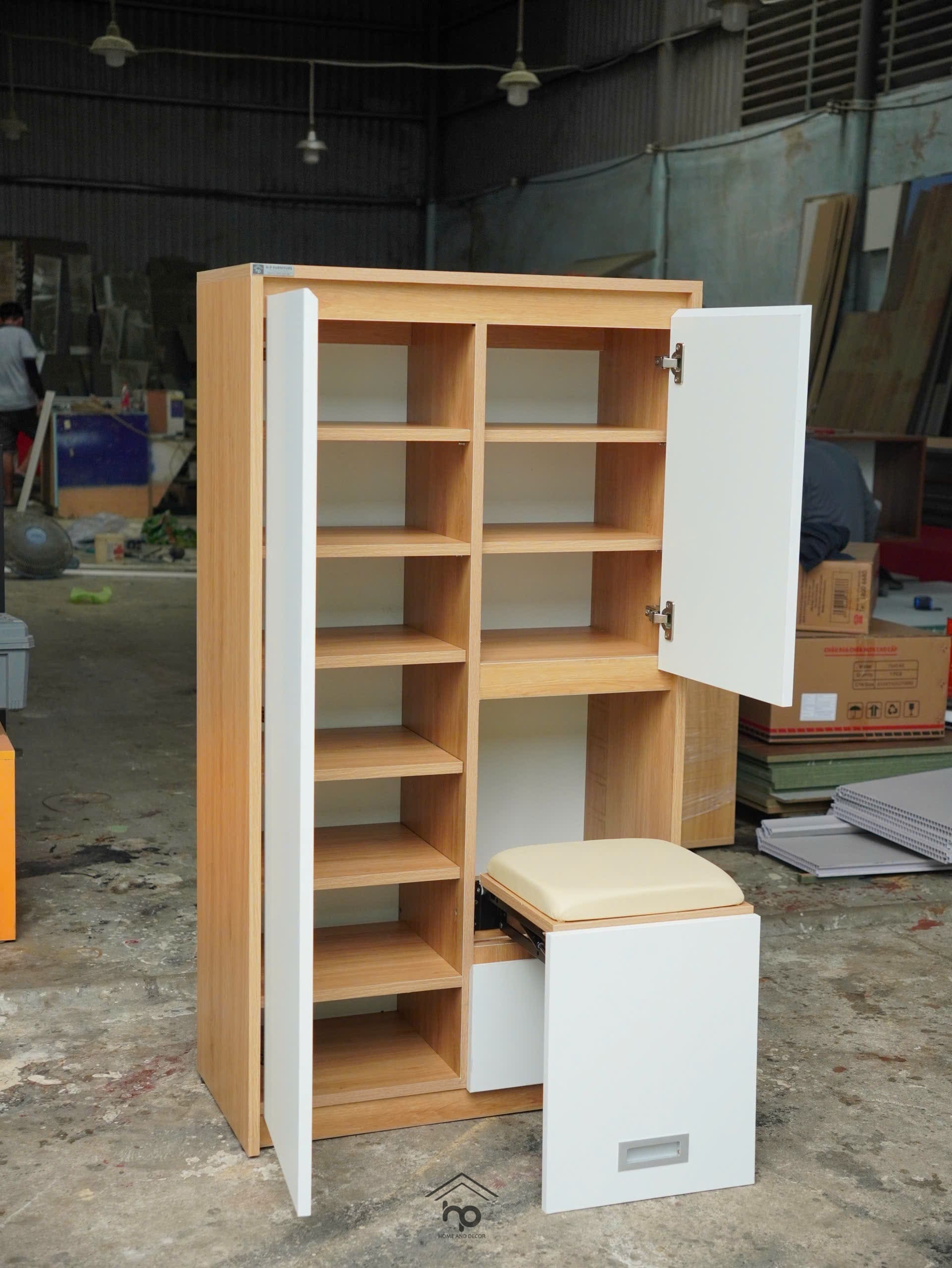 Tủ giày ghế ngồi thông minh rộng 80cm kết hợp khung treo – gọn gàng, tiện nghi