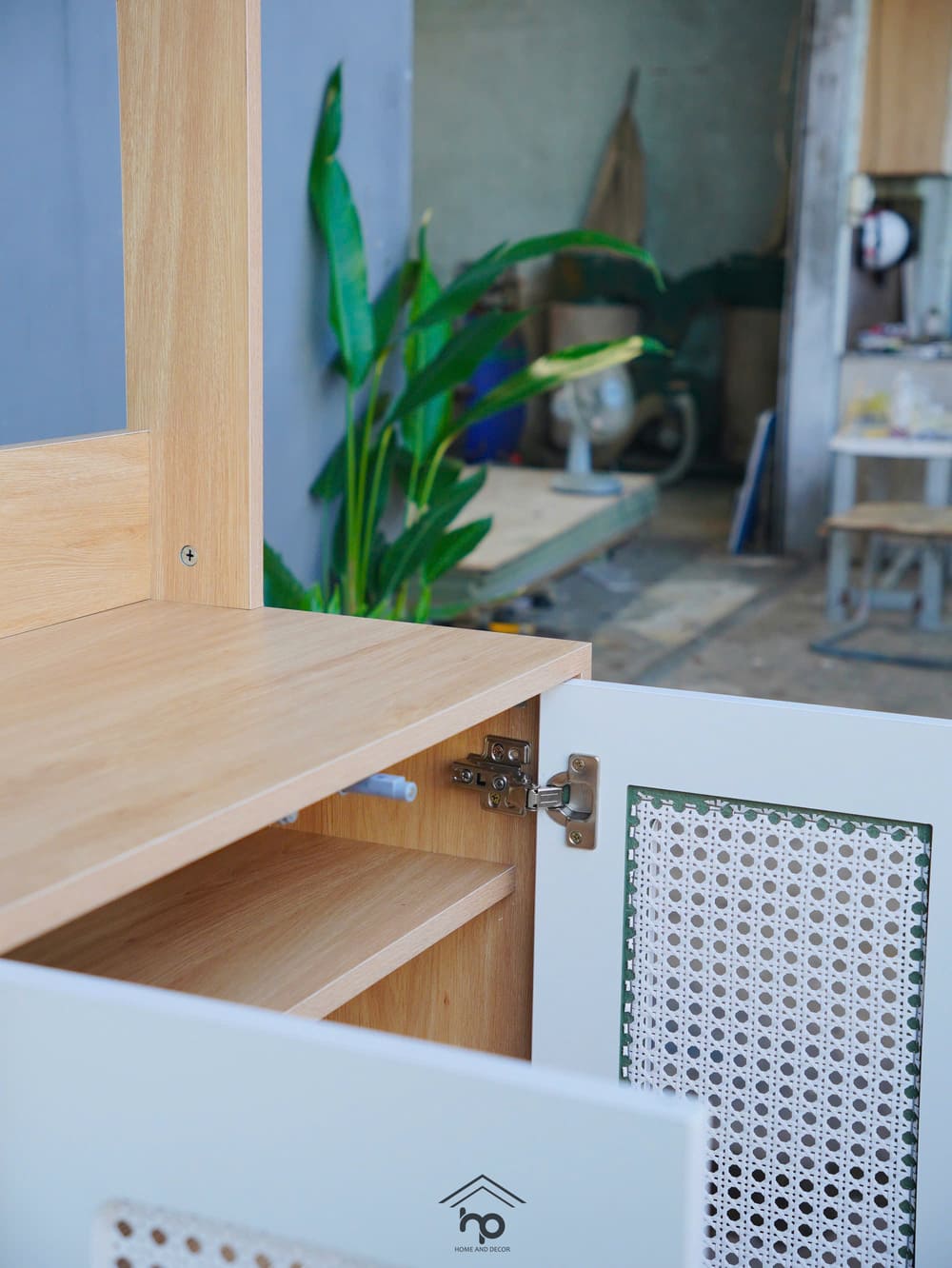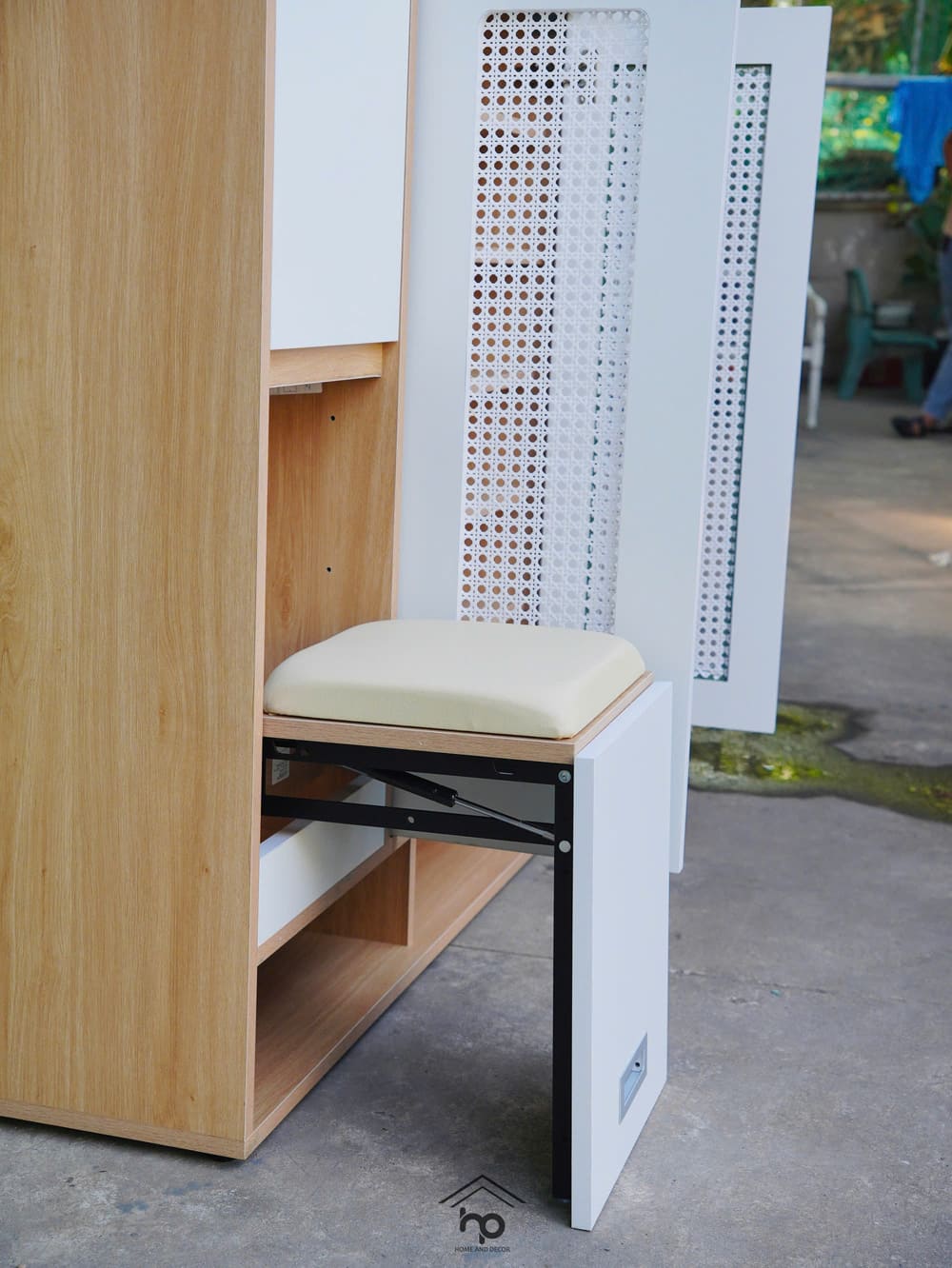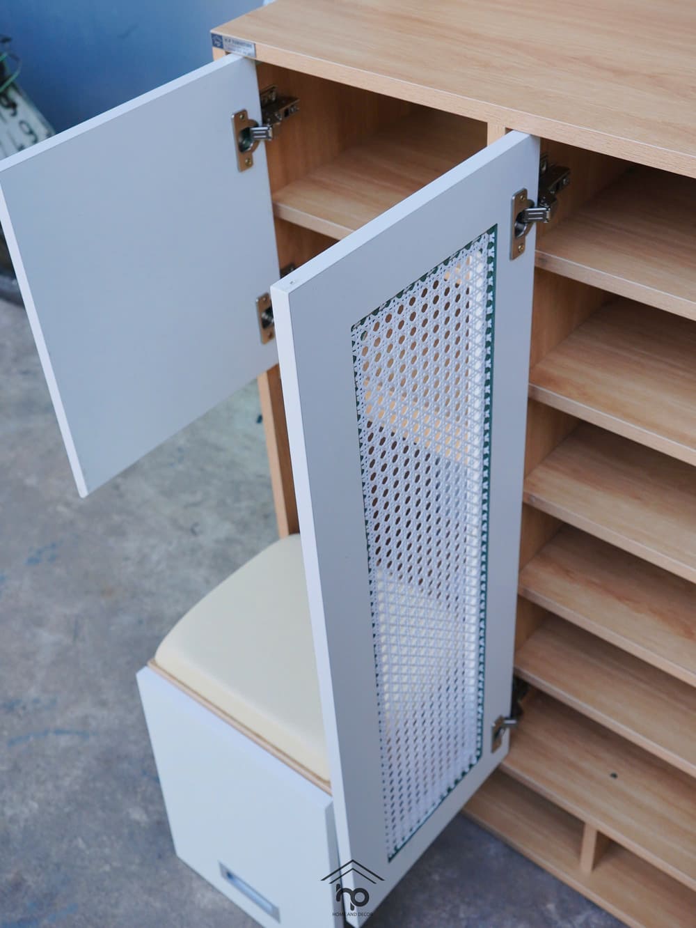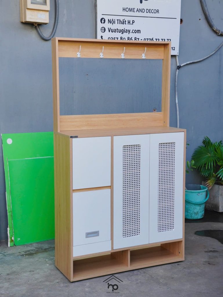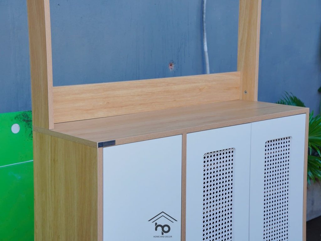 – Cánh bọc lưới mây mắt cáo, giúp tăng tính thẩm mỹ và thông thoáng cho tủ giày