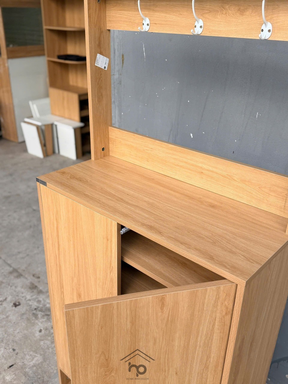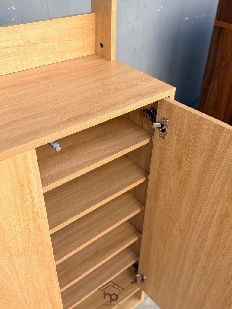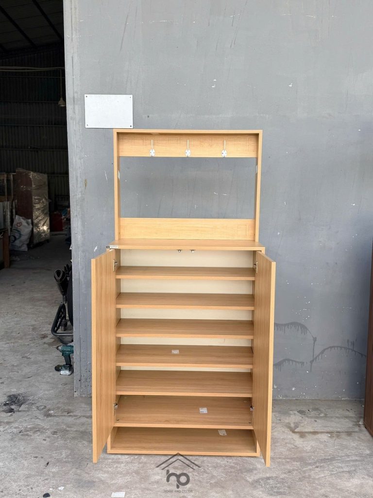 - Thiết kế 2 trong 1: tủ giày + kệ treo đồ, tiết kiệm diện tích tối đa
