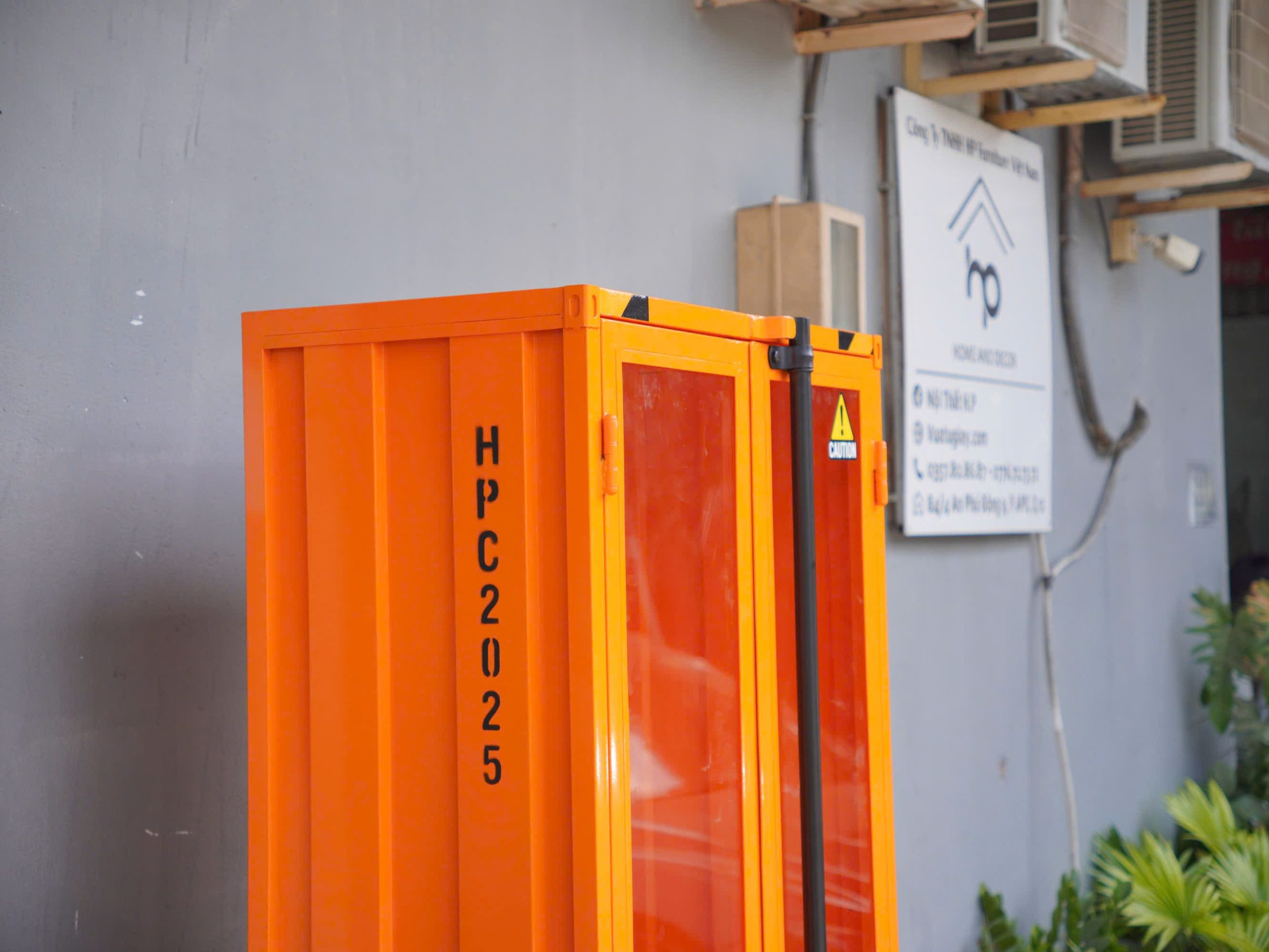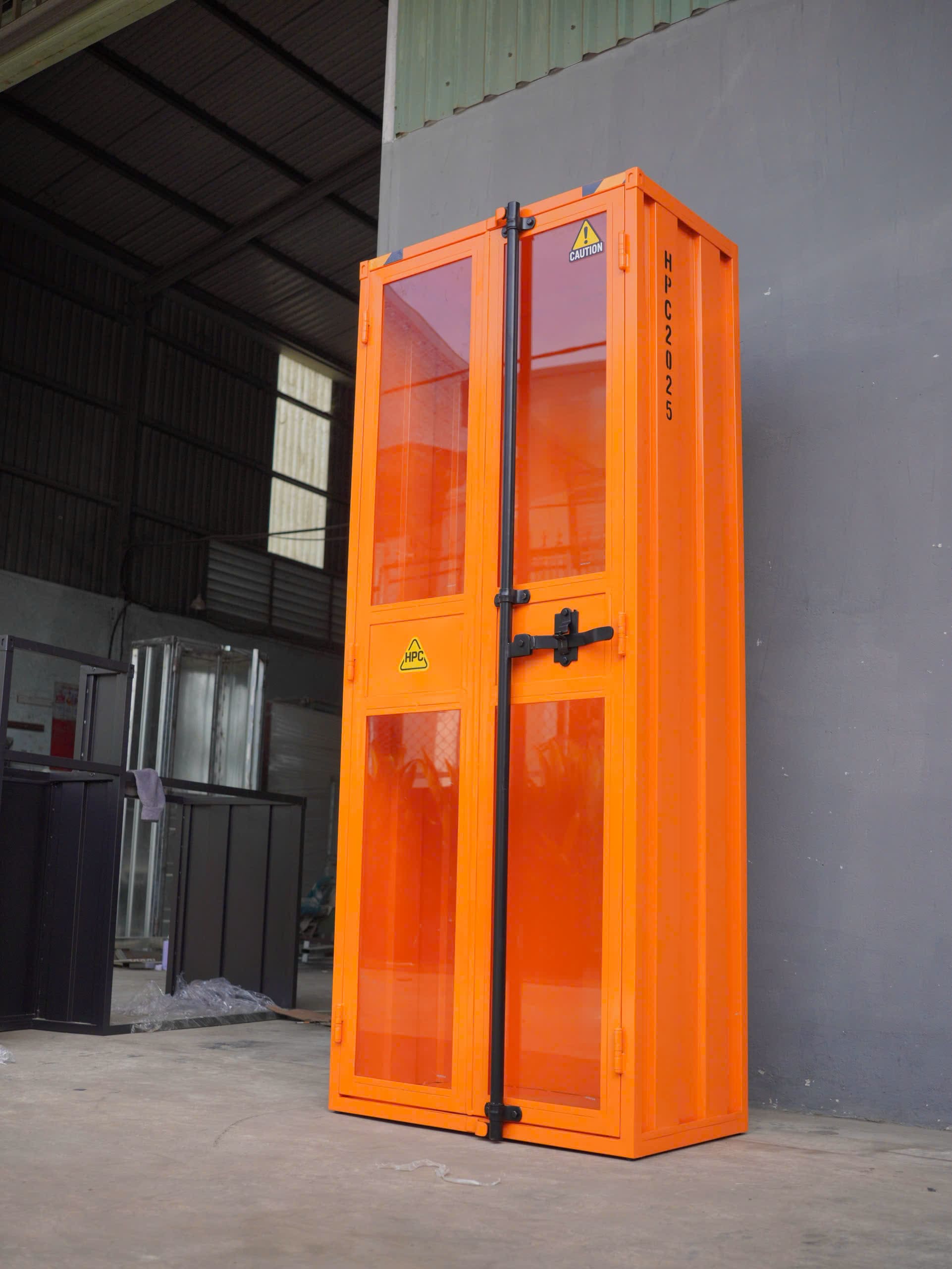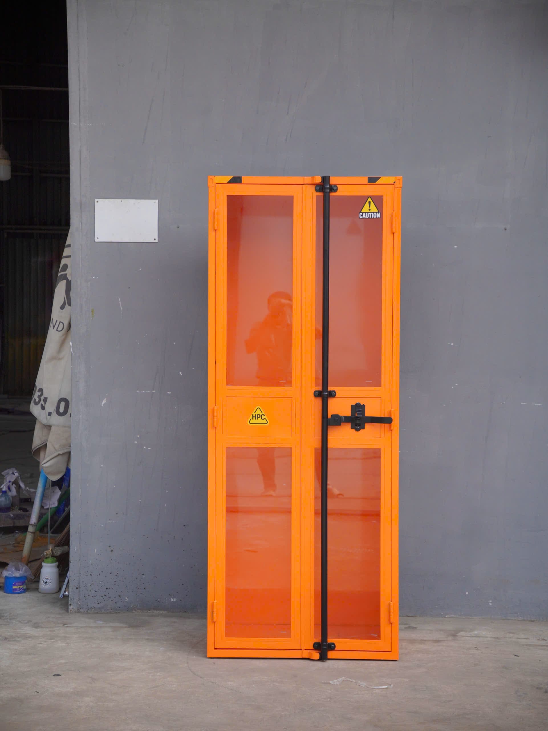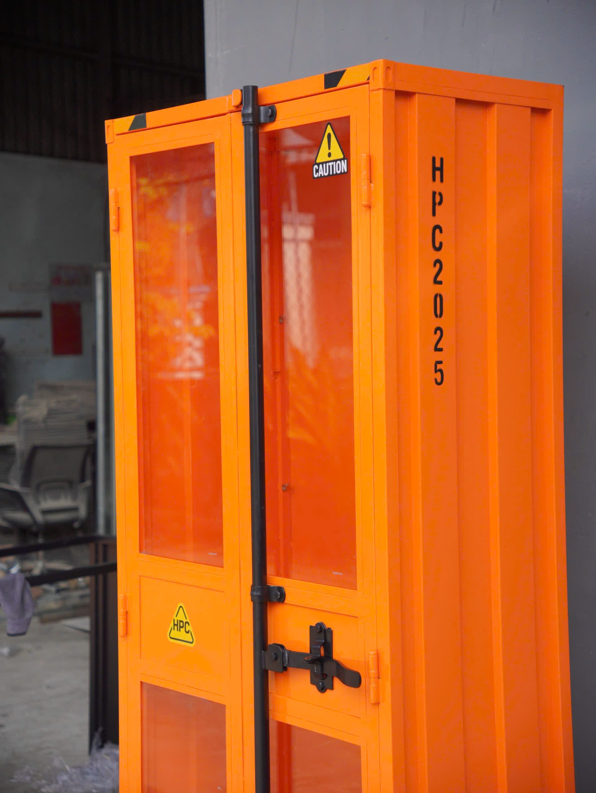 Tủ hồ sơ phong cách container màu cam nổi bật, thiết kế mạnh mẽ với khung sắt sơn tĩnh điện và cánh kính cường lực trong suốt. Kiểu dáng chấn sóng đặc trưng của thùng container giúp không gian trở nên độc đáo, hiện đại và đầy cá tính. Phù hợp cho văn phòng, xưởng, showroom hoặc những không gian yêu thích phong cách industrial.