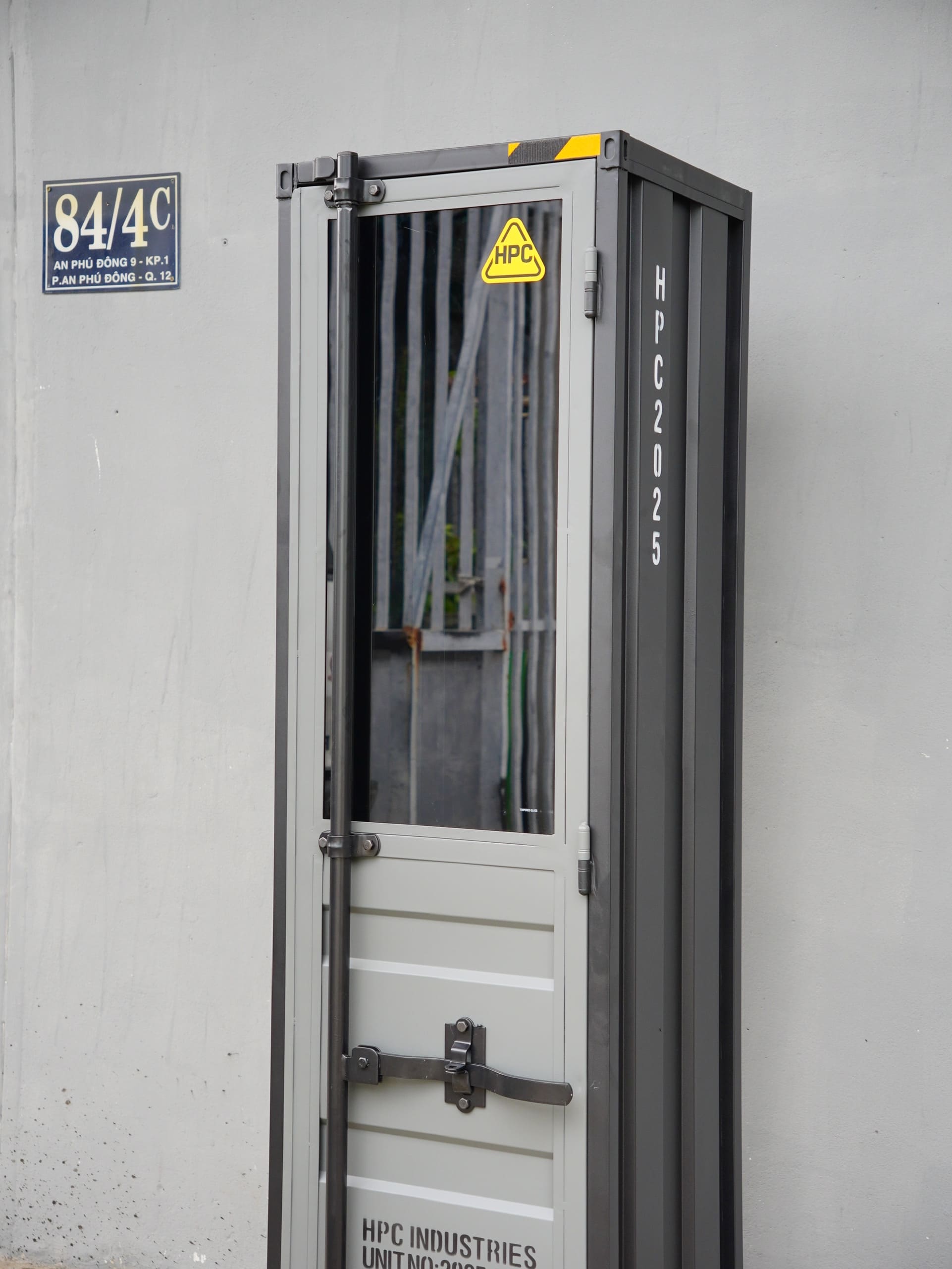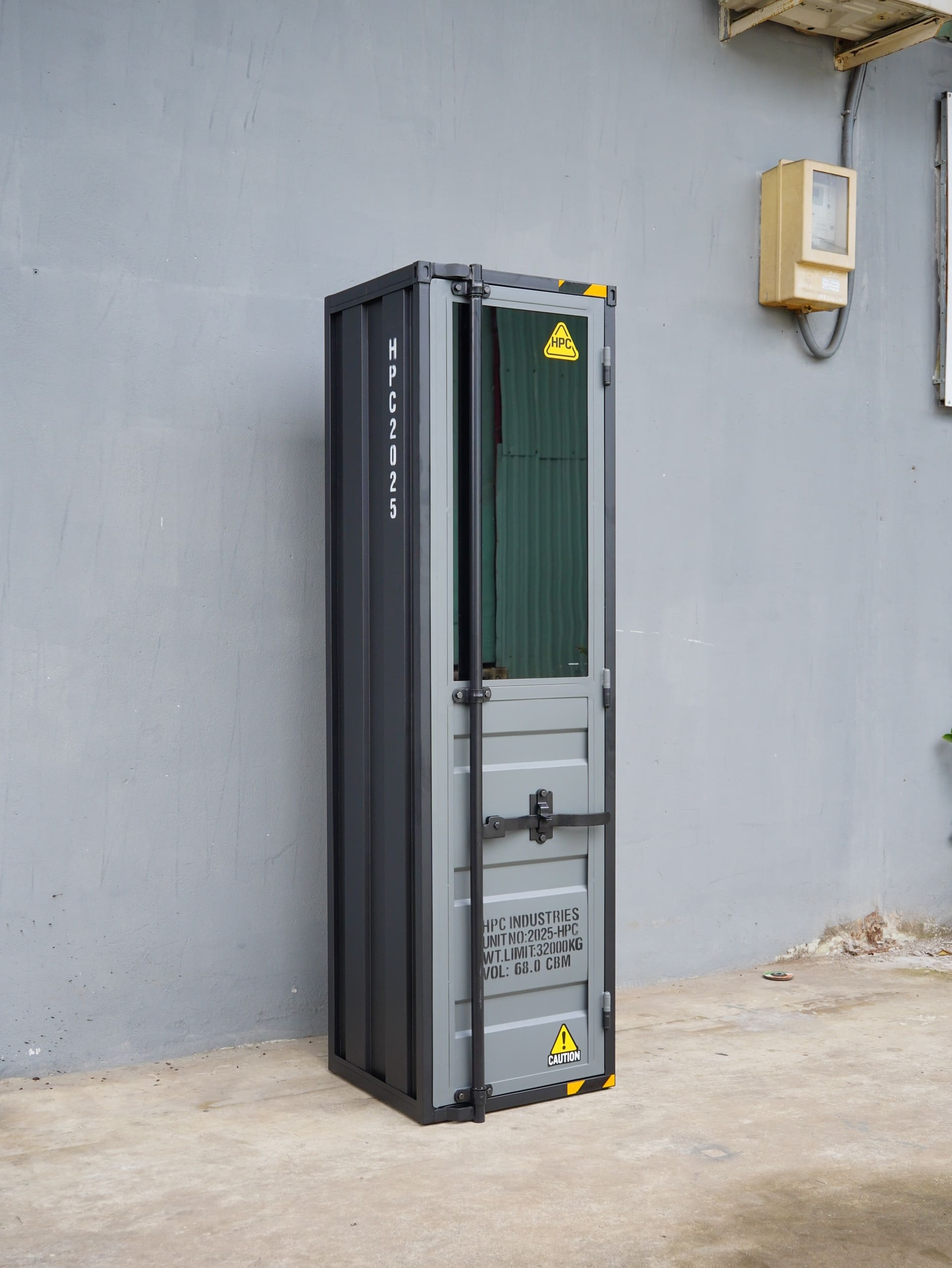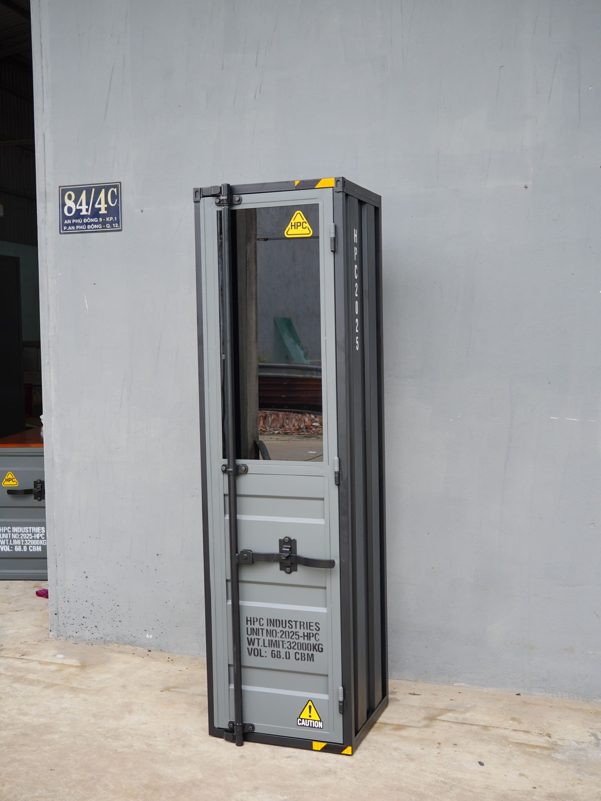 Tủ container mini HPC 1 cánh kính màu xám khói là thiết kế nội thất độc đáo, kết hợp khung container công nghiệp với cánh kính cường lực sang trọng. Đây là sự lựa chọn lý tưởng cho những không gian hiện đại, cá tính, giúp tủ vừa bền chắc vừa tạo điểm nhấn trang trí ấn tượng.