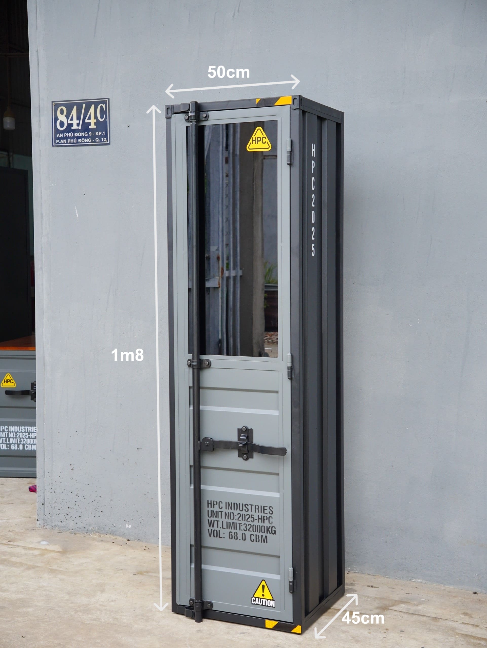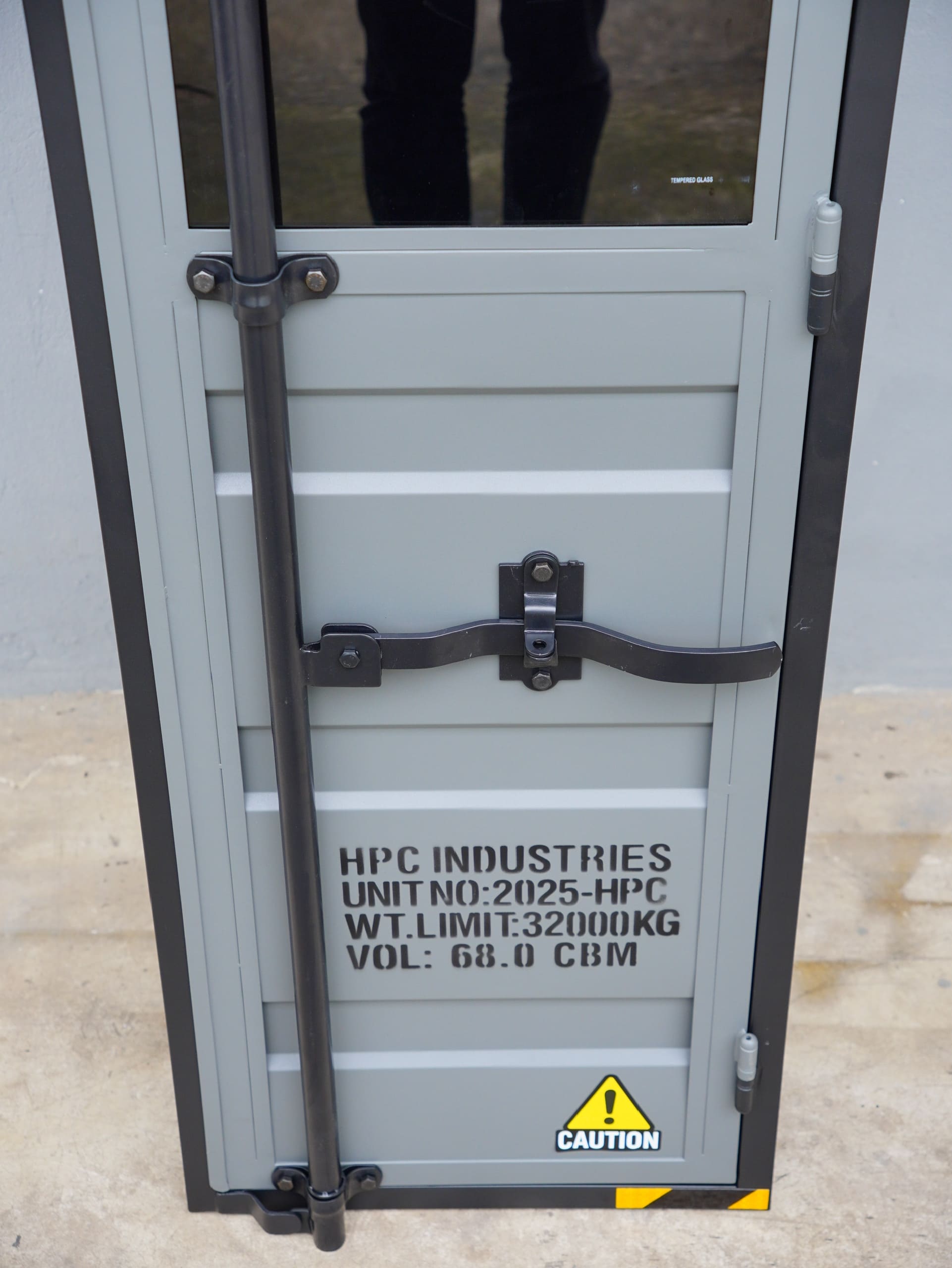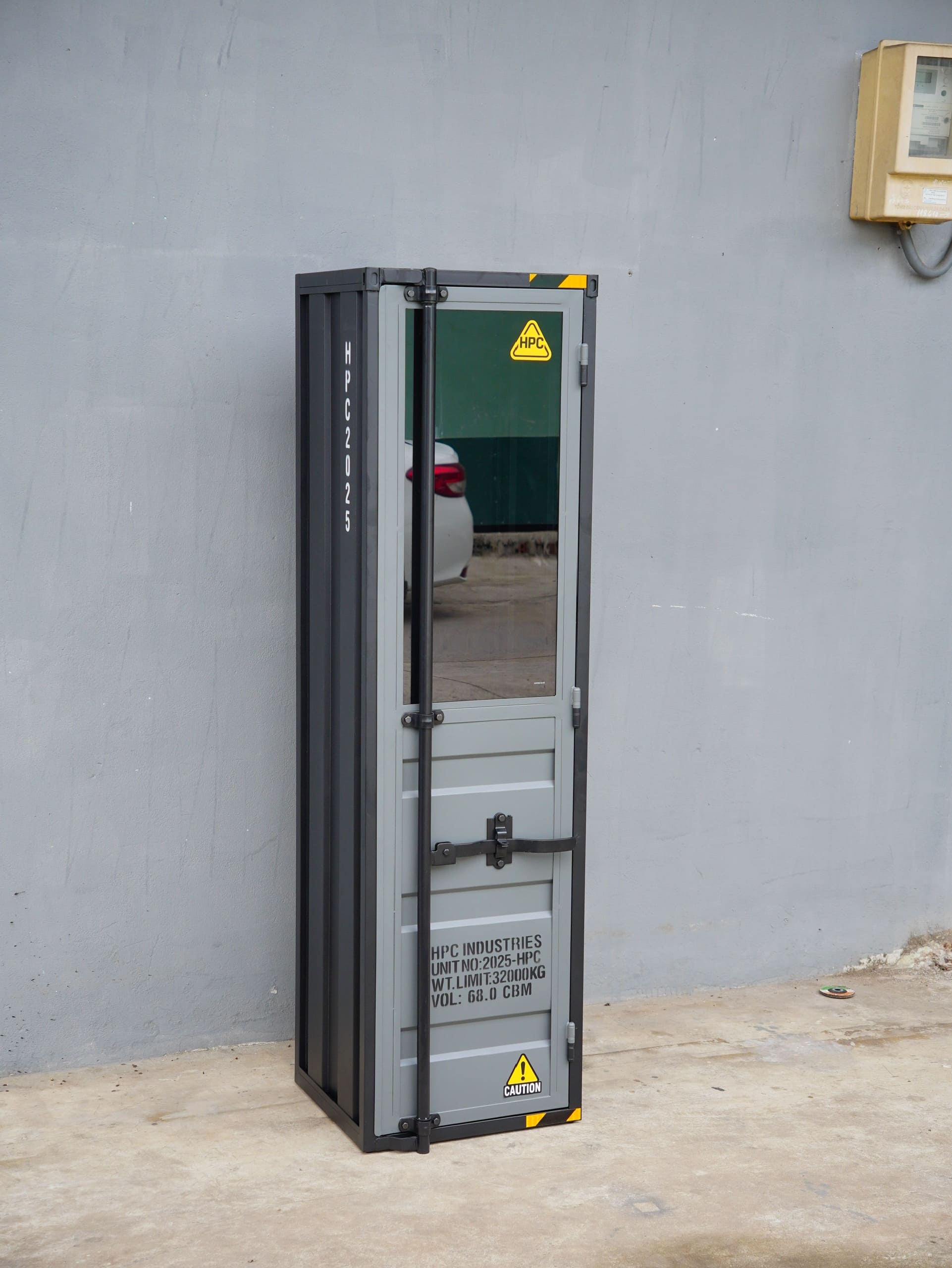 Tủ container mini HPC 1 cánh kính màu xám khói là thiết kế nội thất độc đáo, kết hợp khung container công nghiệp với cánh kính cường lực sang trọng. Đây là sự lựa chọn lý tưởng cho những không gian hiện đại, cá tính, giúp tủ vừa bền chắc vừa tạo điểm nhấn trang trí ấn tượng.